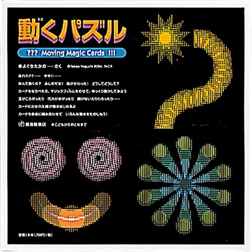最高のからくり! パズルというより、モザイクかな。何種類かの模様が描かれた4枚の正方形を組み合わせ、箱を枠ににして大きい正方形を作るだけ。でも、これからがすごい。付属のセロハンをのせて、箱(少し周囲に余裕がある)の中をカタカタ動かすと、本当に花火やネオンサインみたいに見えるんです。よくできてる!3歳と4歳の子供たちも、喜んでやっています。仕組みは、同じ著者の絵本に書いてあったと思いますが、4枚の絵で作ったパラパラ漫画を1枚の絵にしているということらしいです。とにかく一見にしかず、です。