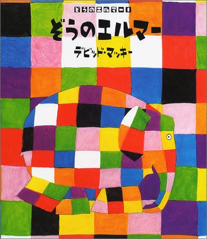 ほほえましい絵本 エルマーは、パッチワークの目立つ象。