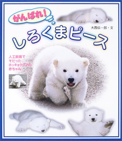 ふわふわピース、元気なピース 2000年の夏、何気なくチャンネルを替えていたTVの画面に ぬいぐるみのように真っ白なしろくまの赤ちゃんに一生懸命ミルクを 飲ませている飼育係の人の映像が映っていました。 どうやら、生まれたとき母熊が子育てできなかったため人工で 飼育されている仔熊のドキュメント番組のようです。 それが私とピースとの出会いでした。 何よリ目を奪われたのはピースの愛らしさです。 真っ白でフワフアの毛皮につぶらな黒い瞳。 そして一生懸命ミルクを飲み、大きな声で鳴き けなげに生きようとする姿、それを大きな愛情で支える 飼育係さん。 ピースははじめは飼育係さんの家で育てられますが 生後110日ほどで動物園で一匹の部屋で暮らさなければ ならなくなります。 その、子離れのせつない様子、しかし動物園で人気者になリ、 元気に跳ね回る様子。。。 TVではプールで泳げるようになったころまでの映像が 紹介されていましたが、この本では、2003年4月 までのピースの物語をを丹念な描写で、子供にもわかり やすいお話にしてくれています。 ページごとにかわいいピースの写真が満載。 表紙もヨチヨチ歩きのピースがこっちにむかってくる写真で 本が着いたとき思わず抱きしめてしまいました。 ピース、これからも元気で育ってね。