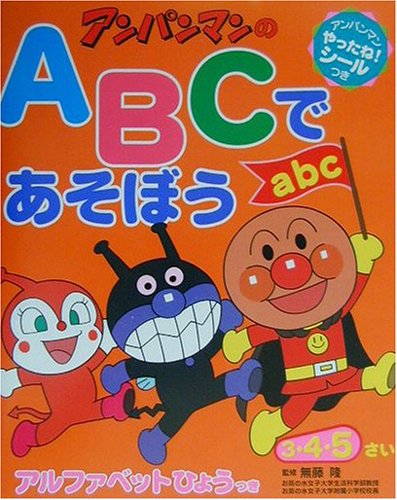 大好きなアンパンマンと英語で遊ぶ ワークブックだけどドリル式ではなく本になっているので絵本のように何度でも見て楽しめます。カラーのページも1/3程度あります。全頁アンパンマンのキャラクターが登場するので子供のお気に入り。シールをはったり、迷路、ぬりえ等もりだくさん。アルファベットを書くことはなく、読む話すが中心です。子供はフォニックスのページが大好きでAの音は「エ」の口で「あ」と書いてあるのでママが発音すると、何度もやってといい喜びます。
